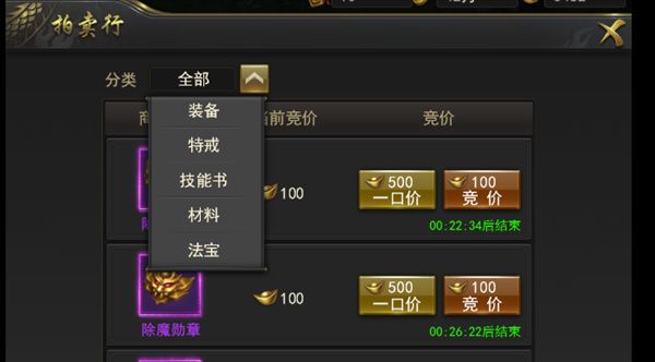 以上就是游戏中的拍卖行啦,小伙伴们巧用拍卖行,让元宝滚滚来!