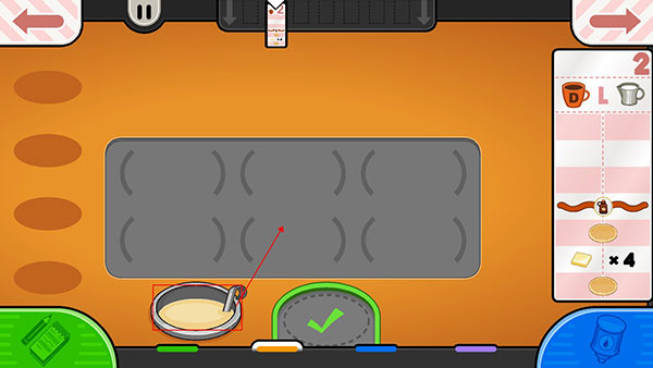 1、游戏通过点击来推进游戏,完成煎饼的制作,十分容易上手。