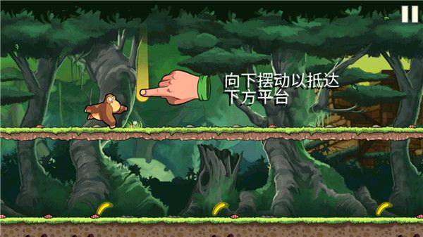 1、奔跑、跳跃、弹跳、在藤条上晃荡,帮助香蕉金刚逃离排山倒海般汹涌而至的香蕉;