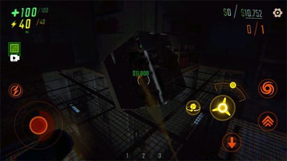 4、进入游戏后左边控制角色的移动,右边是跳跃、蹲下,滑动屏幕可以转动视角。在屏幕右上角是你当前需要完成的目标金额,只有达到要求才可以通关。