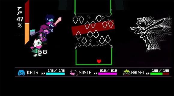 3、开局Kris紧迫宝石,Susie粗暴碎击,Ralsei防御。随后Kris和Ralsei每回合保持防御,Susie则一直打碎击,若Susie血线不健康则优先让Ralsei打药,Kris保持防御。