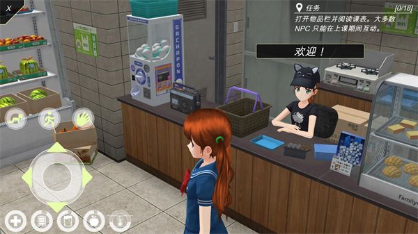 2、只有便利店里有取款机可以取钱,游戏会根据难度不同每周给玩家不同的生活费,其余的需要自己打工来获取,打工也是在便利店,和便利店的角色互动后在深夜里来就可以开始工作。需要注意的是,来便利店工作需要玩家一定的沟通技巧,可以先和其他NPC互动增加社交技能点数。