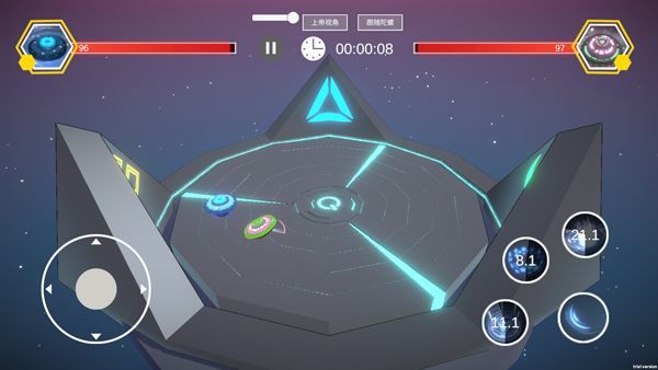 5、玩家可通过左侧轮盘来控制陀螺移动,右侧则为技能键;