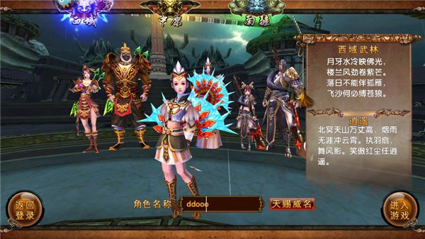 4、这这里就可以选择不同武林的角色,输入名字之后选择进入游戏。
