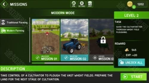 2、选择农场模式,有现代农场与传统农场两种模式,不同的模式下有不同的任务关卡;
