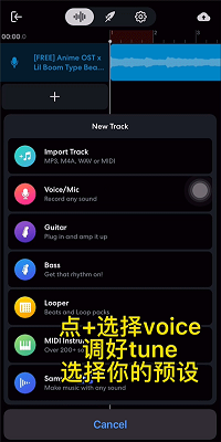 2、进入之后点“+”选择“Voice”调好“Tune”。