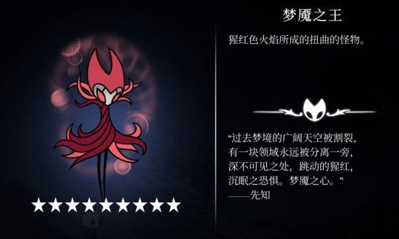 以主角初始的劈砍距离,你会发现死活摸不到boss,然而装备了骄傲印记之后,一砍一个准;在没有暗影冲刺时,躲避boss的大锤走位十分极限,且有一定看脸成分在里面,获得暗影冲刺后,boss难度立刻直线下降……可以说是一个强度受主角能力影响非常之大的一个boss了。如果你是0级剑+黑尖叫,当我没说……