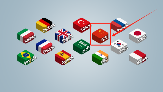 2、选择中文的国旗后会出现一个手指。