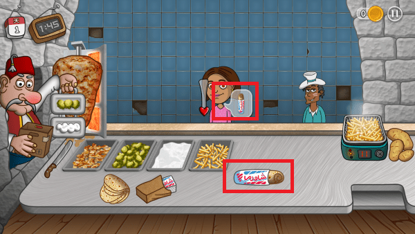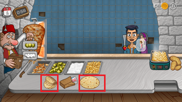 4、完成沙威玛的制作,享受创新的经营过程,进行快节奏的点击,提供对应美食卷饼。