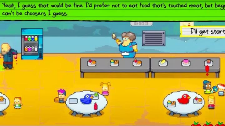 在现实中,无论是学校还是公司,总有那么一群人像是隐形般的存在,你会跟老师、同学、同事、上司打招呼,但清洁工?恐怕就……但是在《幼儿园》里,在这个大人的绝对权利社会中,即便是再隐形的他们也有了足够的存在感,分分钟戳死玩家,再灵巧的嘴炮也不管用了,你和你骄傲的倔强只能在清洁工的墩布下被压扁,徒留一地鲜血还要麻烦人家来清理。