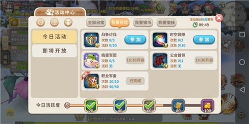各位萌主大大,点开主页的“活动”按钮之后就会看到我们的日常活动列表了。这里各位大大们可以根据自己的需求选择,我们今天说的主要是萌新升级,所以我们直接点击“我要经验”,这里我们会看到主要的经验活动有那些: