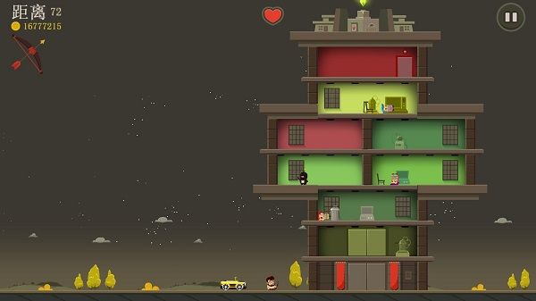 游戏中主要是以破坏建筑物为主,我们可以通过手枪、猎 枪或者汽车来实现。为了物理学原理,我们的主人公一般是开汽车去横冲直撞来实现破坏效果,玩家向上滑动屏幕汽车就向上跳跃,向下自然是降落到下一个楼层了,玩家可以自行在楼层之间穿梭,而手枪和猎 枪只有在打BOSS的时候才能用。