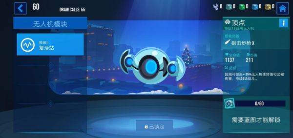 顶点无人机:这也是一款民用无人机,其承载武器是狙击步枪X,它的武器伤害相对较高。