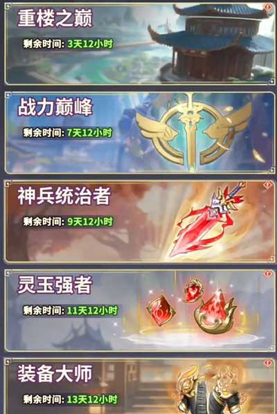 在拿的过程中,有时间还可以去打一下神兵统治者、装备大师和灵玉强者这三个活动,这三个中前两个会给到高级装备和神器,这其中神器是一种属性增幅类型的道具,有了之后全队的属性都能提升,高级装备的话就不用多说了,就是给金色品质武将装备的,可以大幅度提升战力。大家在爬完塔以后就可以去给这些装备、神器刷一刷,随后刷完后战力上去后就可以继续去推主线了,然后有了灵玉就去抽,为自己麾下补充新鲜血液,之后无限滚雪球就可以了。
