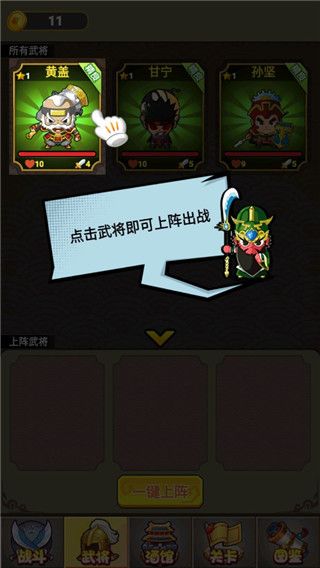3、点击武将即可上阵出战;