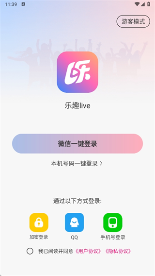 1、下载乐趣live,打开软件即可看到下面的弹窗,点击同意。