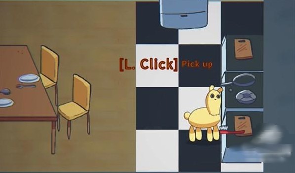 7、直接将玩偶旁边的杯子捡起来,打开冰箱,就能倒入牛奶。