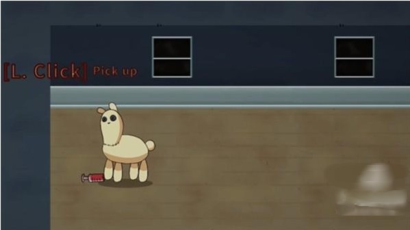 4、捡起下面的针管,然后往前面走,然后看到两个玩偶,直接开始对话。