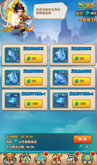 ②仙玉可以在“仙玉商店”中购买装备升品用的图纸和宝石;