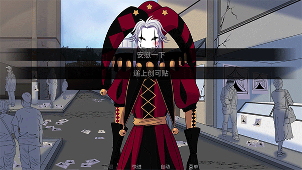 3、游戏采用视觉小说的模式,需要我们点击屏幕开始下一段对话,也可以点击“自动”