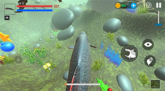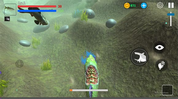 3、探险与猎食:玩家可以自由地在水中遨游,猎捕其他生物,补充能量,这种探险和猎食的玩法让玩家体验到海底生存的紧张和刺激。