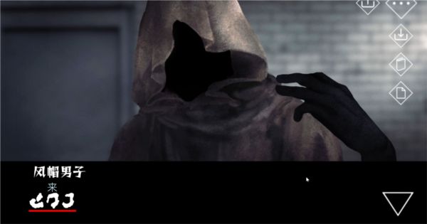 3、这时候会发现前面有一个说不明语言的风帽男子;