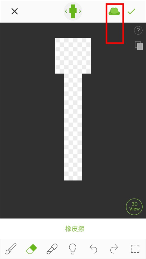5、点击上方的帽子图标,就可以编辑皮肤的第2层。编辑皮肤的第2层,可以让皮肤人物本身显得更加真实和立体,点击圈中的图标,可以让人物皮肤的第1层和第2层同时显示。