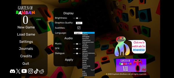 班班幼儿园,喜欢解谜惊悚游戏的玩家肯定不陌生,已经上架了多种版本了。小编今天带来的班班幼儿园0官方正版,是其的第八个版本。在该版本中,延续了前面几部的惊悚场面,设计了全新的解谜题材,将带给玩家全新的游戏体验。玩家需要利用自己善于发现的眼睛去寻找各种各样的线索,尽可能的逃离这个是非之地。此外,游戏支持中文、英文、西班牙语、日语等多国语言,可以供各国的玩家在游戏中熟练的进行游戏。