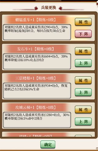 当然兵装也是可以通过升级来提升自身的属性,可以通过收集兵装零件来升级主公大大们的兵装,可以在主界面的兵装系统栏选择需要升级的兵装或者在武将栏的下方选择需要升级的兵装进行升级,等级越高带来的效果收益就越明显哦。