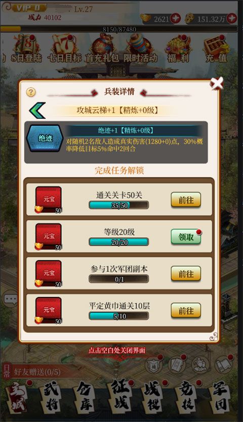 新增加兵装系统达成了特定的条件可以获得大量的元宝奖励与特定的装备,大大地节约了各位玩家大大刷副本获取装备的时间与周期哦。