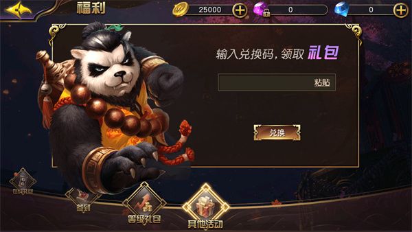 其它活动:当你在游戏之外获得了《太极熊猫3:猎龙》相关的礼包码(CDK)时,可以前往该界面输入兑换码领取奖励。