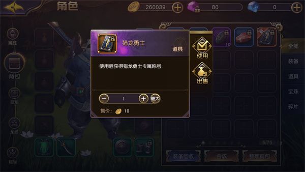 当各位勇士达到10级时,可以点击屏幕右侧的“猎龙勇士”,点击后将获得该称号,前往背包内点击使用即可。