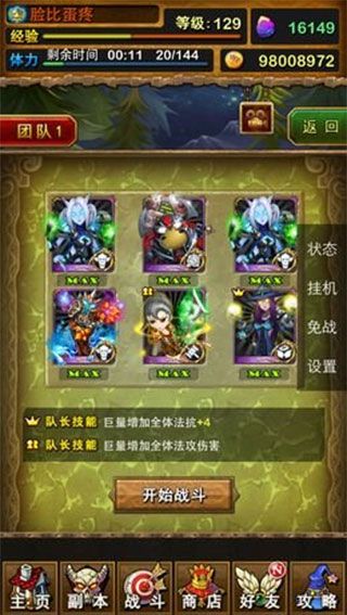 2、从当前版本来看,前期的话还是推荐4保一,一个C,两个T,两个奶妈。如果前期没有抽到好的,初始阵容就可以MT,傻馒,猎人,呆贼,法丝。