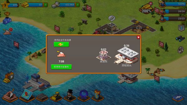 在这里小编要特殊提醒各位玩家一类建筑,就是渡轮码头。渡轮码头是有自己通往的目的地的一种海上交通运输港口,要是玩家想要解锁下一个目的地,就必须进行码头的修缮。但是码头并不等同于港口,港口是属于政府设施的,能够产生一定的盈利,也跟普通的建筑一样可以升级。这两种建筑的区别各位玩家要注意。