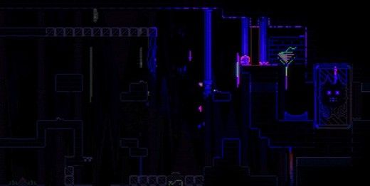 3、之后前往图中所示原最终boss所在位置,右侧红框为传送动物头,左侧红框为所处位置。到达后开启紫外光道具可以看到墙上有陀螺符号,使用陀螺打开前往左侧的通路。