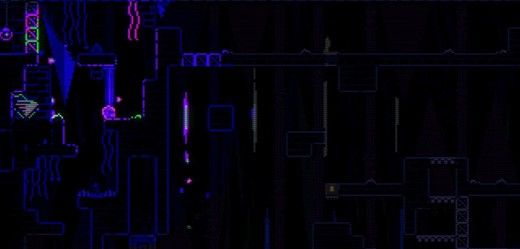 5、向右切版两次后,来到下图位置,这里开紫外线可以再次看到陀螺符号,但中间有玻璃墙分隔开(图中红框部分),曼狄柯的激光可以打碎这里的玻璃墙,之后使用陀螺打开右下隐藏墙,会出现一个轮子底座和一个曼狄柯图案的滑块,使用轮子将滑块滑走,再向右切版,有一个蓝桃子可以吃掉回血,之后一路向左返回王座房间。