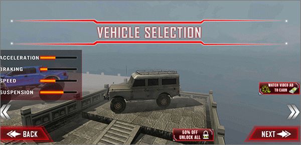 3、给你提供了各种不同的越野车你可以去选择你喜欢的来驾驶