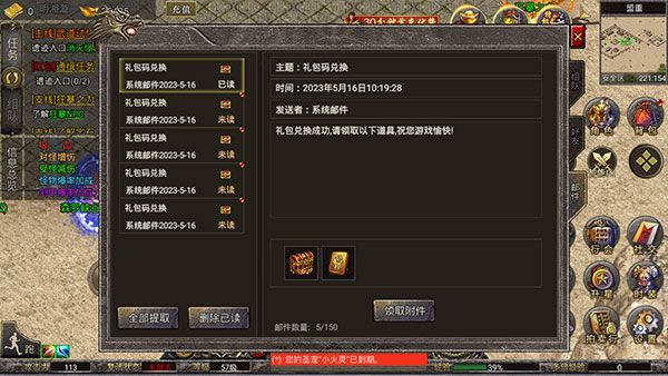 2、兑换好的礼包码奖励会发放至邮箱中,点击右下角的【社交】-【邮件】,再手动领取即可。