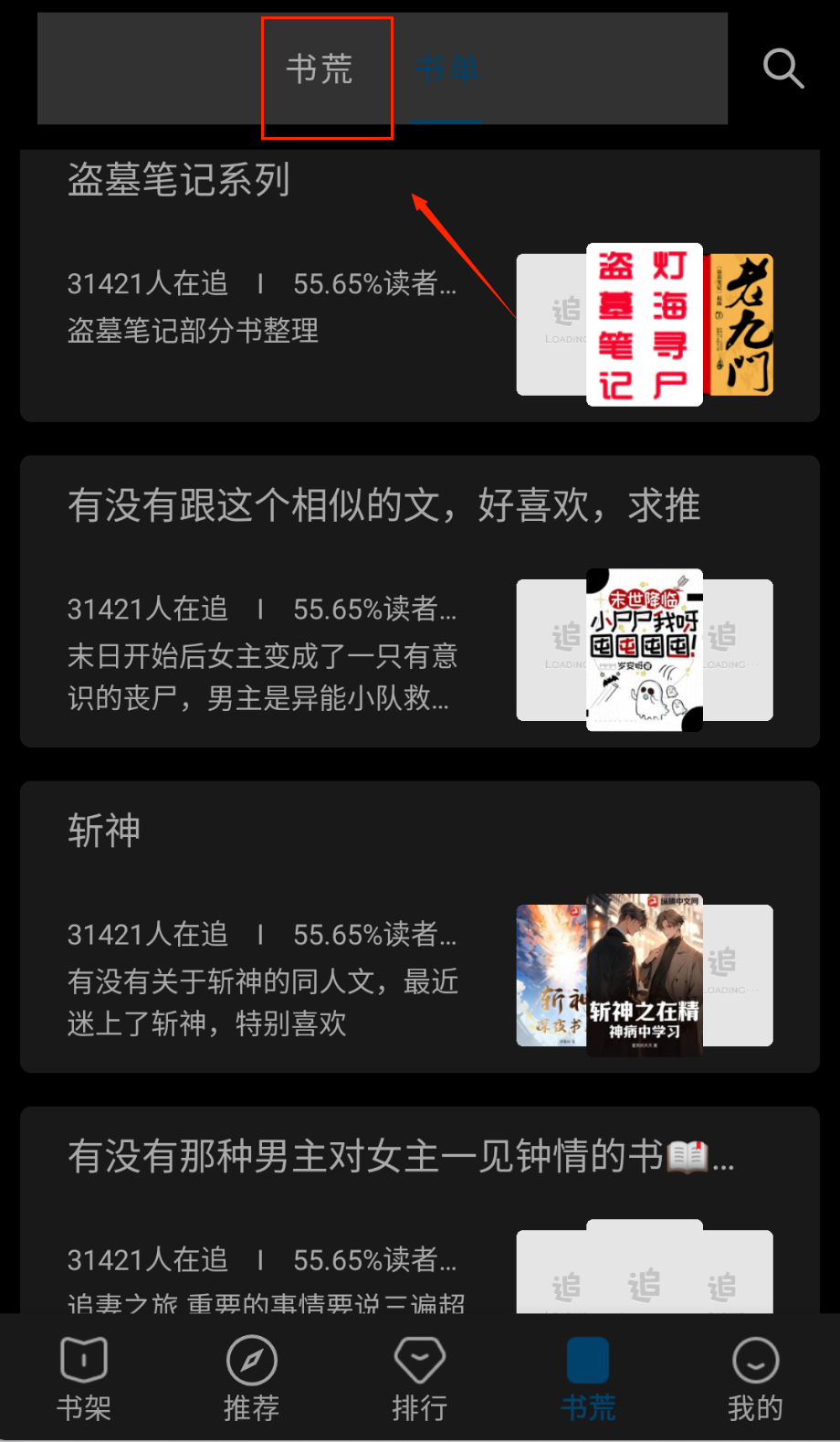 3、使用书荒功能可以发现更多好书推荐,系统会根据你的阅读喜好智能推送可能感兴趣的书籍。