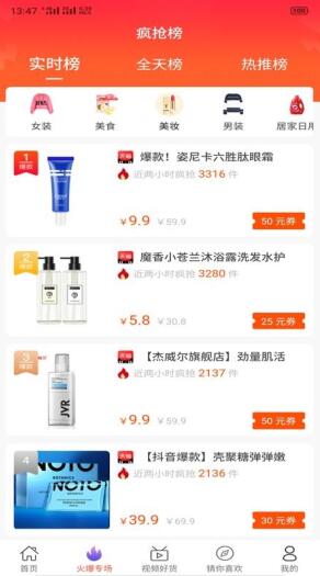 1、设置有疯抢榜,包括实时榜、全天榜和热推榜,立即了解各个页面中的商品。