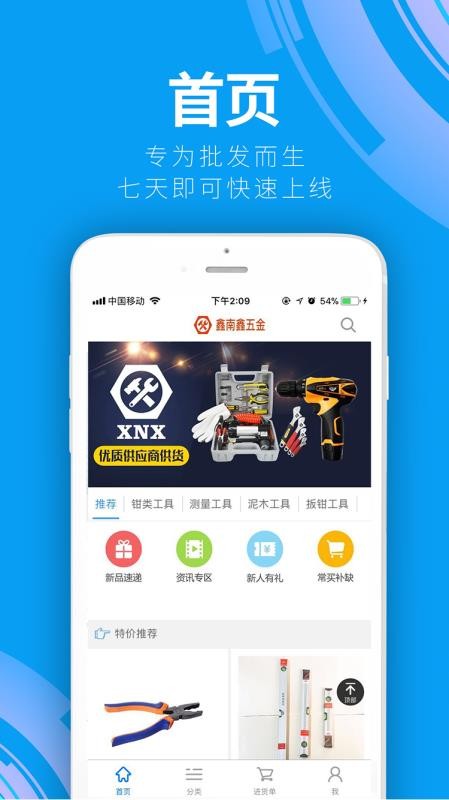 《鑫南鑫》是一款为五金行业的供货商们提供服务的软件,让供货商能够轻松采购各种类型的五金工具,满足不同用户需求。应用中有多种功能,用户可以在这里看到各种类型的五金工具,根据自己店铺的库存情况快速采购进货,更轻松的经营店铺。用户通过软件能够看到各种优惠活动内容,通过各种活动享受更多订货折扣,从而能够节省自己的经营成本。