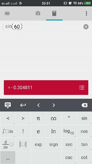 在photomath的计算键盘中可以看到,该APP能够实现的多种运算。