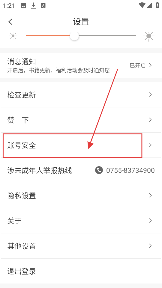 2、进入设置界面后,找到【账号安全】选项,点击它就能进入账号安全相关设置页面啦。