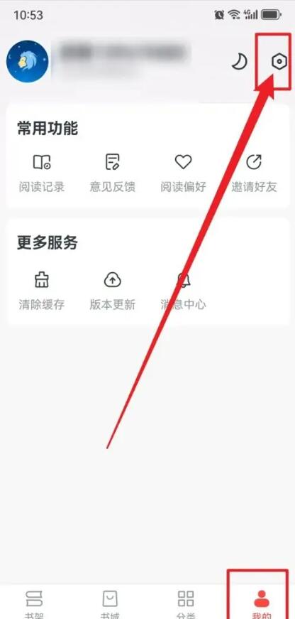 1、打开免费淘小说App,选择进入【我的】界面,点击【设置】图标。