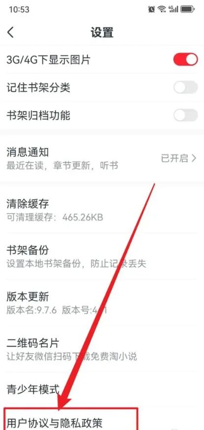 2、进入设置界面,点击【用户协议与隐私政策】。