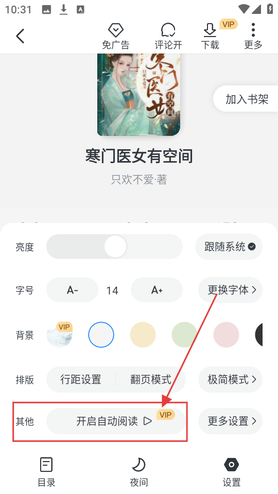3、在设置选项里,若想开启自动阅读,点击【开启自动阅读】按钮,就能进入自动阅读设置啦。