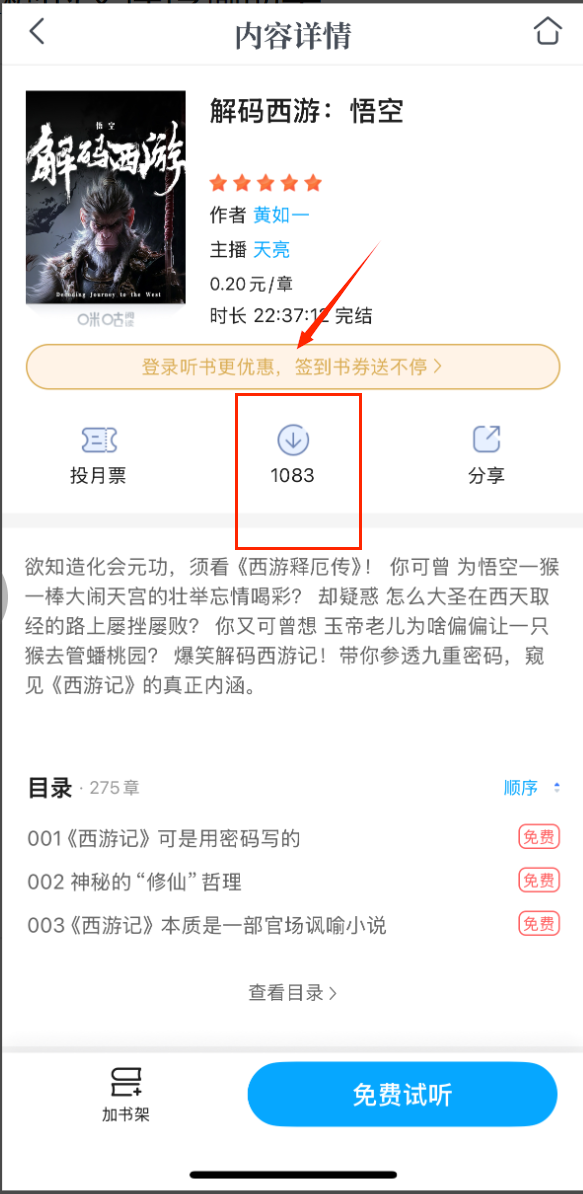 3、任意书籍详情页点击免费试读前五章,觉得合适可加入书架或直接下载,支持txtepub等多种格式。