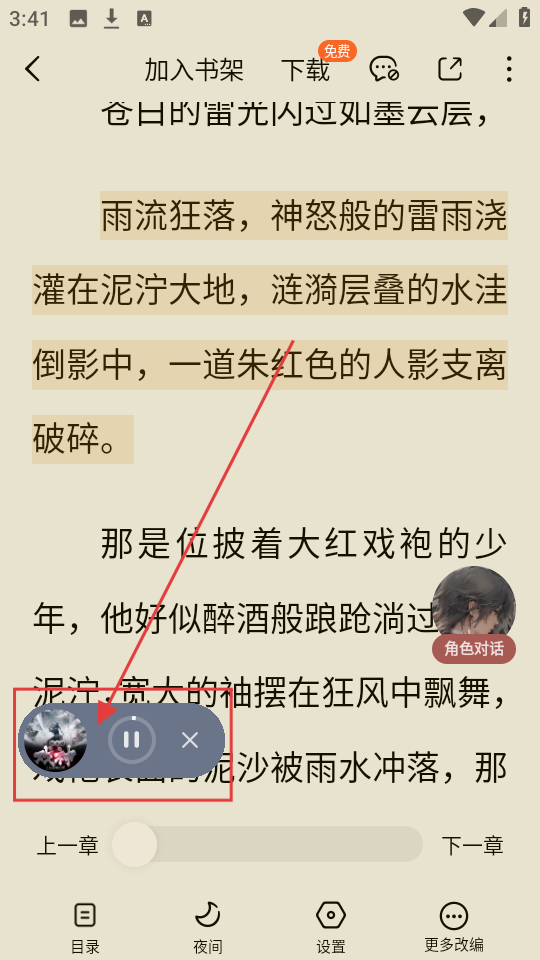 2、听书时,会出现播放控制栏,可随时暂停或关闭,灵活掌控听书节奏哦。