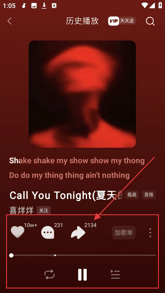 4、在历史播放歌曲详情页,有分享、点赞等功能,可和朋友分享喜欢的歌曲,超赞的。