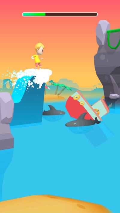 休闲好玩的冲浪游戏,游戏中的小子玩家在手机上操作,跟着音乐的节奏随时进行闯关,丰富的游戏场景,经典的游戏景色,在宽广的大海上冲浪别有一般的风味,选择喜欢的角色,解锁更多关卡吧!